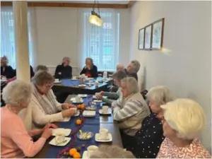Ein liebevoll festlich gedeckter Tisch erwartete die Mitglieder der AWO Dotzheim zur jährlichen Weihnachtsfeier. Die Vorsitzende Gaby Wolf freute sich in ihrer Begrüßung darüber, dass kein Platz in der „Gut‘ Stubb“ im alten Rathaus Dotzheim leer geblieben ist. Für ihren Vortrag einer modernen Weihnachtsgeschichte erntete sie viel Beifall. Eine mit Stollen und Stullen, Kaffe und Sekt reich gedeckte Tafel sorgte für das leibliche Wohl der Besucherinnen und Besucher.